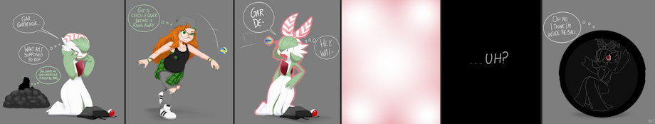 got a new addition to their Gardevoirification set! Putting on the accessory, then breaking down in tears as she realizes what she's doing, then being captured by