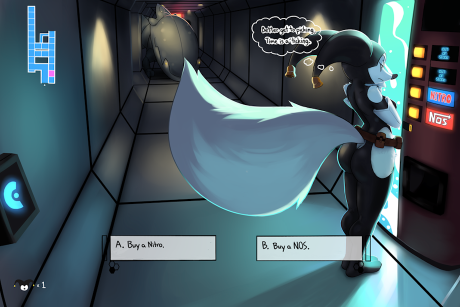 At this moment the being begins entering your hall. Realizing from you are as good as blocked in, you decide to enjoy a refreshing beverage from the nearby vending machine. The buttons light up waiting for your selection after you insert the coin.'