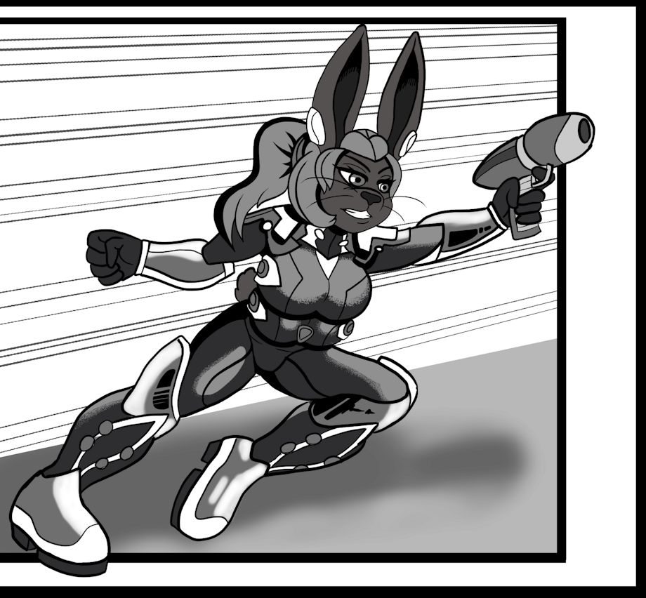 Here's my exceptionally boobtacular high-tech bunny April, caught in an action pose by
