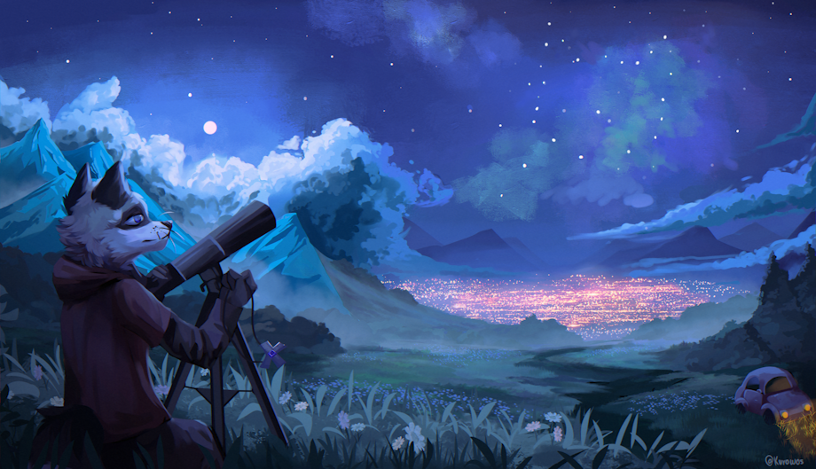 I swore I would find you. 7 years ago to this day is when I swore to you I would do what it took to reach you. I destroyed my life for this endeavor, and I shall not forget that effort's failed legacy. Long distance relationships... If I ever had the chance. If I ever met someone even more perfect than the boyfriend I have now. If I were to be alone again and he still stood there, like a star in the night sky... I no longer hold the will to build the rocket ship to find him... So all I can do, is watch him from my telescope...