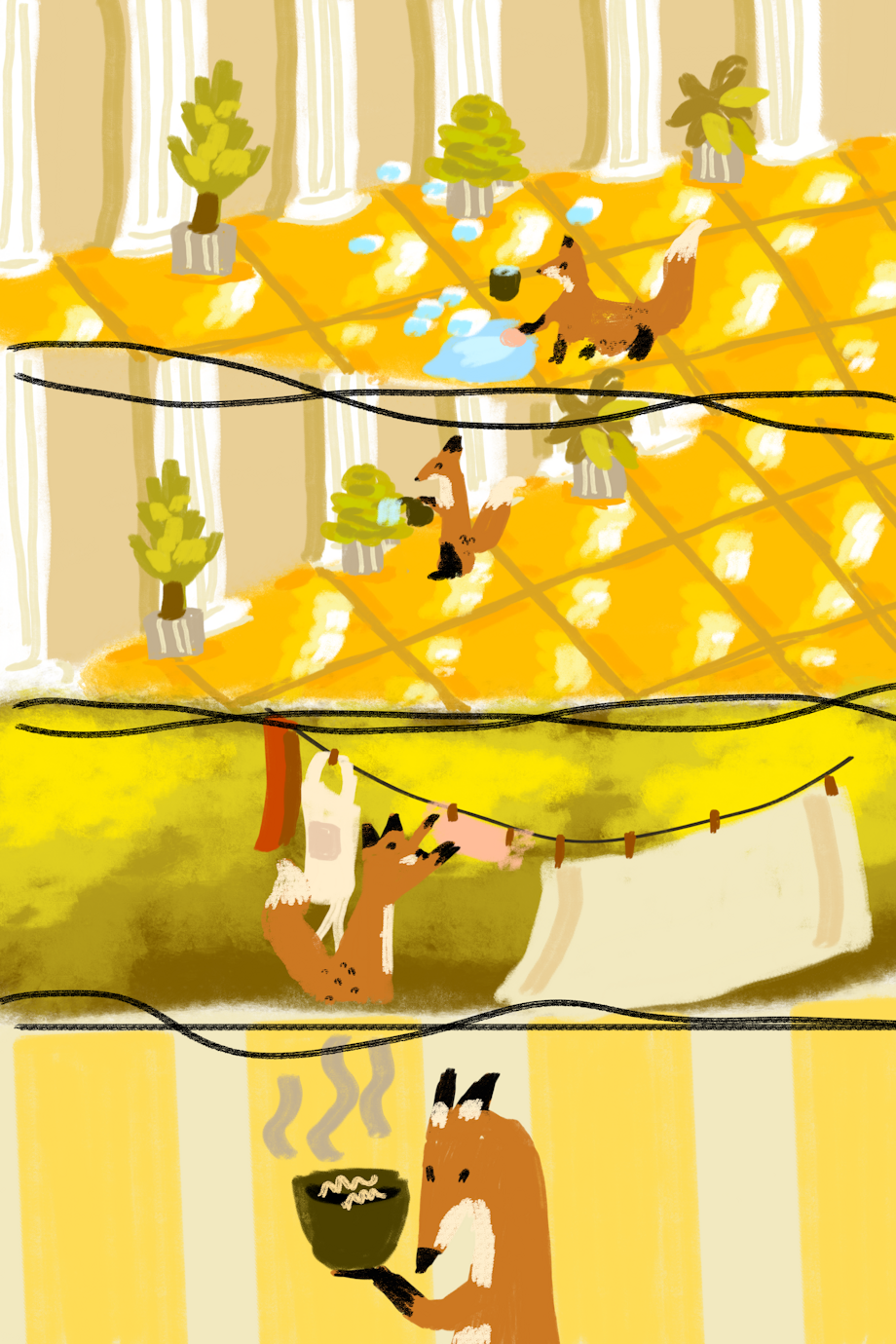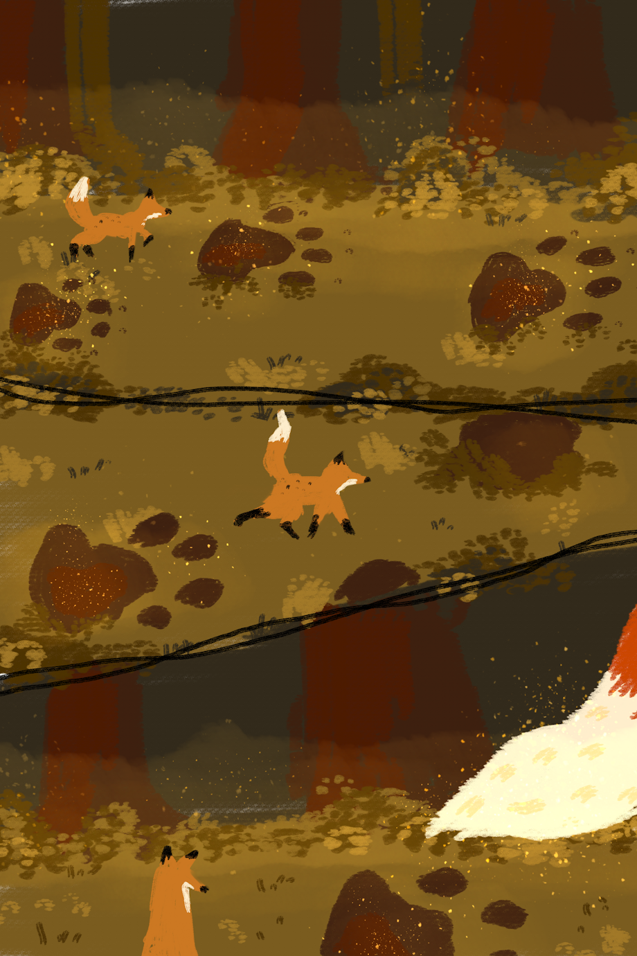 , my lovely fiancé who was nice enough to do the composition and panel layout. No promises that I'll keep making comics or pictures, but the premise is that foxes must journey and seek out Fox Gods in order to gain immortality. This story focuses on one particular fox's attempt to gain immortality for himself by serving the forest god.