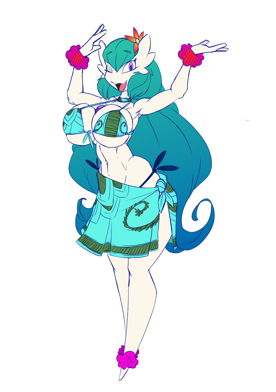 This one was a lot of fun to work on! I felt like I learned some things working on it too. I had a lot of fun playing around with all the exact colors to make sure I got them right. Her sarong and bikini took the most number of revisions, as I kept going back in to fiddle with the color of the green til I was satisfied with it. And her hair was by far the most time consuming part of the process. I had to carefully select every part of it by hand. I ended up making a 'template' layer of just that selection in the work file, just so I could have a save of what I was working on, just in case I ever need to go back and tweak the hair.