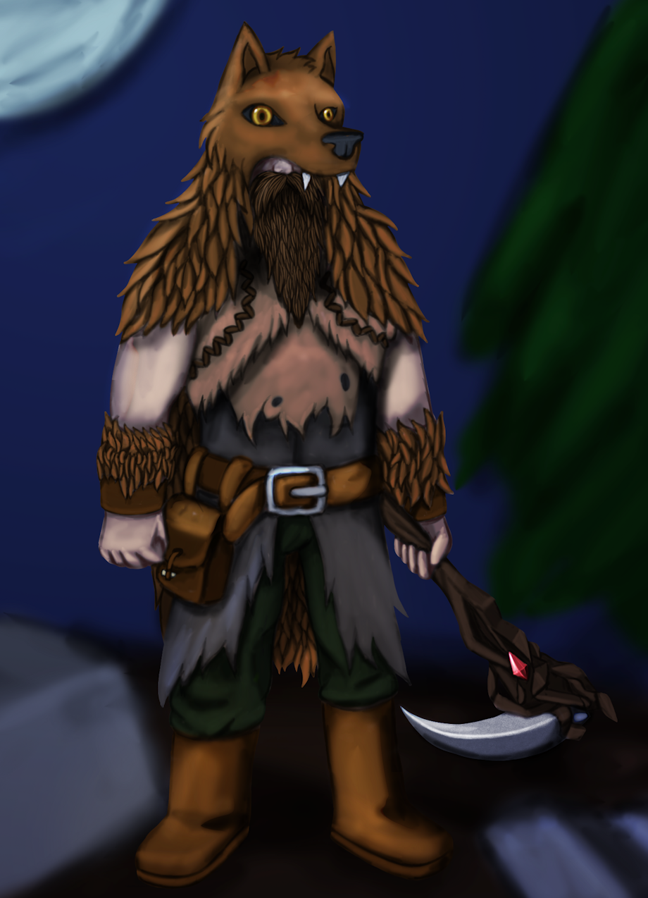 the cluent's character hehe is a werewolf so I made him using hide and fur armor, a scythe made with with dragonwood