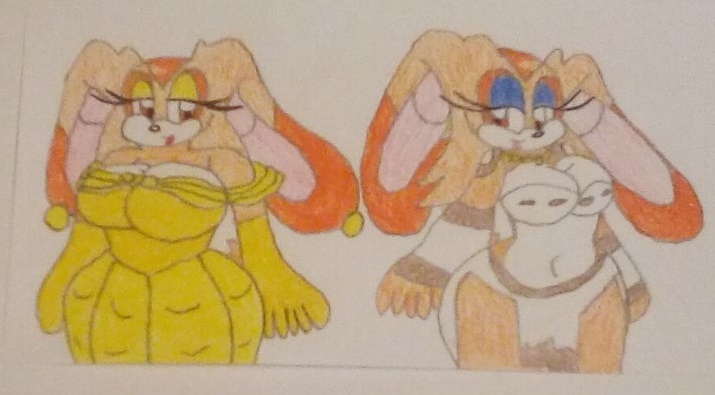 Doodles of older Cream cosplaying as Belle and Krystal.