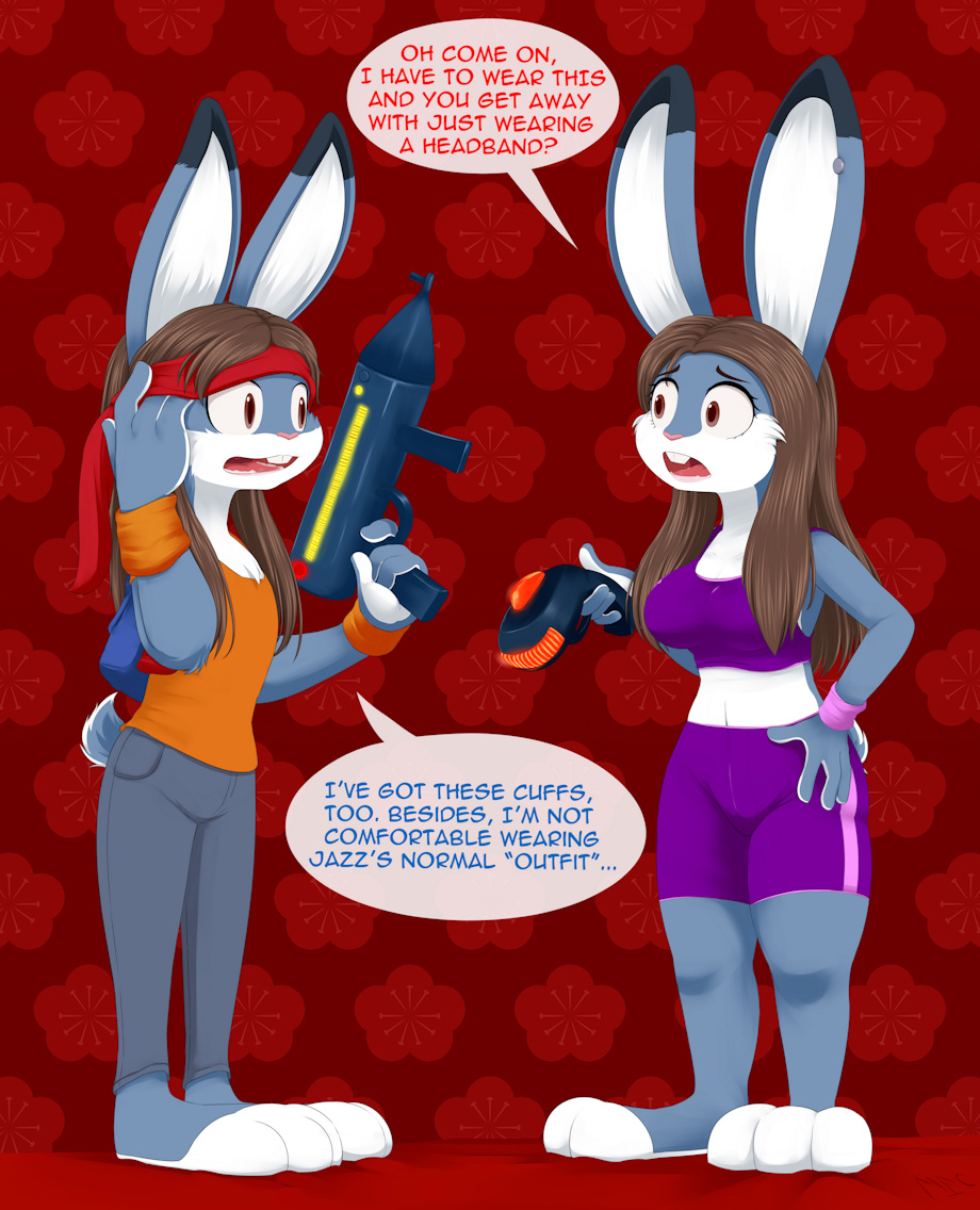 to cosplay as Jazz Jackrabbit and and Lori Jackrabbit, Jazz's clothes are quite simply to cosplay, though if you tried out and went out I'm gonna guess you'll likely get arrested.