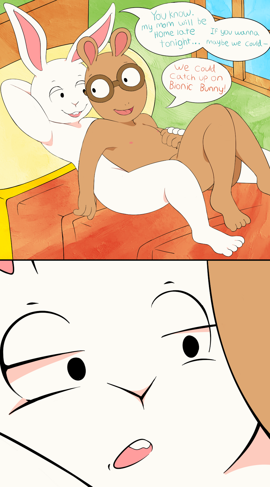 I love how you depicted both of them, honestly. I imagine Buster got naked out of a sexual desire, but Arthur just did because Buster asked him to. He’s so oblivious that, even with his best friend’s bits pressed against his back, the rabbit’s left hand resting over his own, Arthur still can’t take the hint, which is wonderful. Haha, looks like Buster will have to be even more direct with his advances after this. |’D