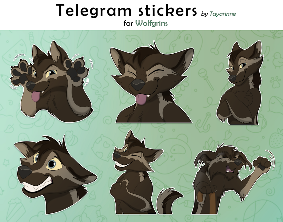 Telegram stickers for ✨Wolfgrins! Thank you so much for commissioning me! 💛