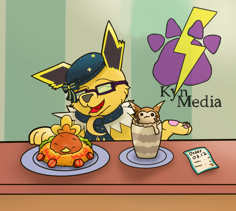 So, this is my first time to really do something for the different Pokemon days, and given how deep I've been getting back into Pokemon, AND the fact that I'm part Jolteon, it feels right to actually do something for Jolteon Day this year. So, have my Jolteon from the Pokemon Cafe Remix games, serving orders at the counter! Also, sorta gave her my glasses, as that's not part of her actual attire in the game x3