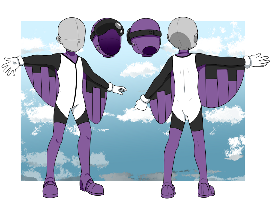 This is Parker’s personal Sky Trainer Wing Suit. While most Sky Trainer Flight Suits come in Various colors such as red, yellow, pink and assortments of blue, Parker’s Suit is Purple. He picked this particular for his flight suit because he was thinking of his Noivern. His Helmet is also the same color.
