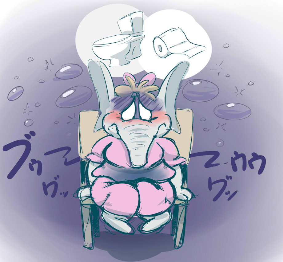 The little elephant sat at her desk in class listening to the teacher explaining her lesson. It was an everyday 4th grade classroom, the usual classmates sitting and answering questions, the same posters and whiteboard notes, not too bad of a day outside. It was almost completely normal—that is until the little elephant began feeling kind of funny. She didn't feel sick, just sort of weird for a few minutes. The teacher kept on with her explanation as normal, and everyone else seemed like nothing felt out of the ordinary. The little elephant relaxed and waited for the strange feeling to pass. But unfortunately, it didn't pass. In fact, it started to get weirder and weirder...Soon, she started feeling REALLY funny—until she finally realized it was her tummy. Her tummy felt like a pot of soup that was coming to a boil. At first, it was just a strange, sticky feeling in her stomach. Then, he tummy growled even though she wasn't hungry—and then her belly felt heavy. Super heavy! She sat in her seat trying to wait for the feeling to pass, but before she knew it, she realized she didn't just feel strange...She realized she had to go potty. Bad!