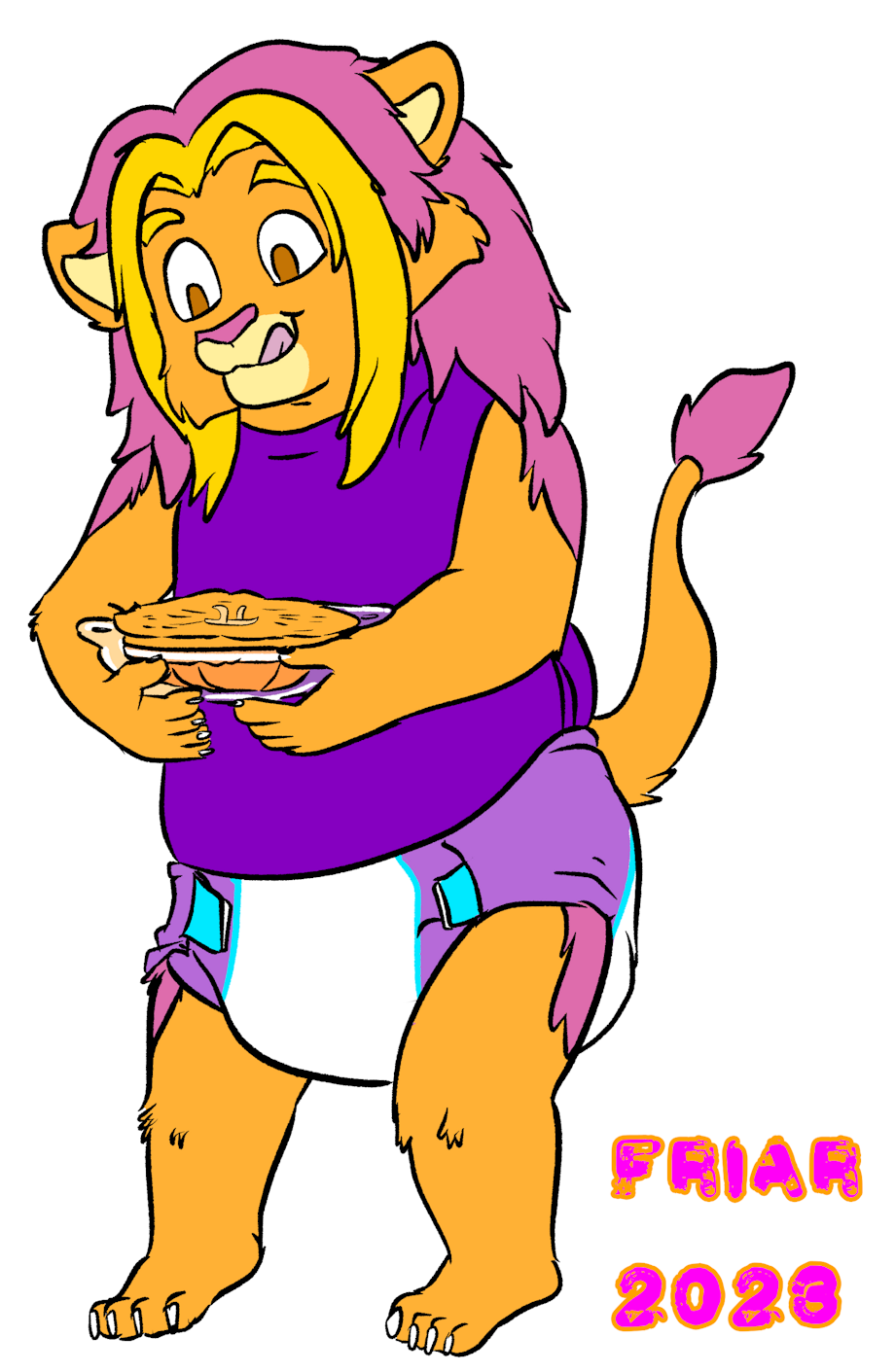 Illustration of Friar in front of the fridge looking down at a tasty pi-decorated pie.