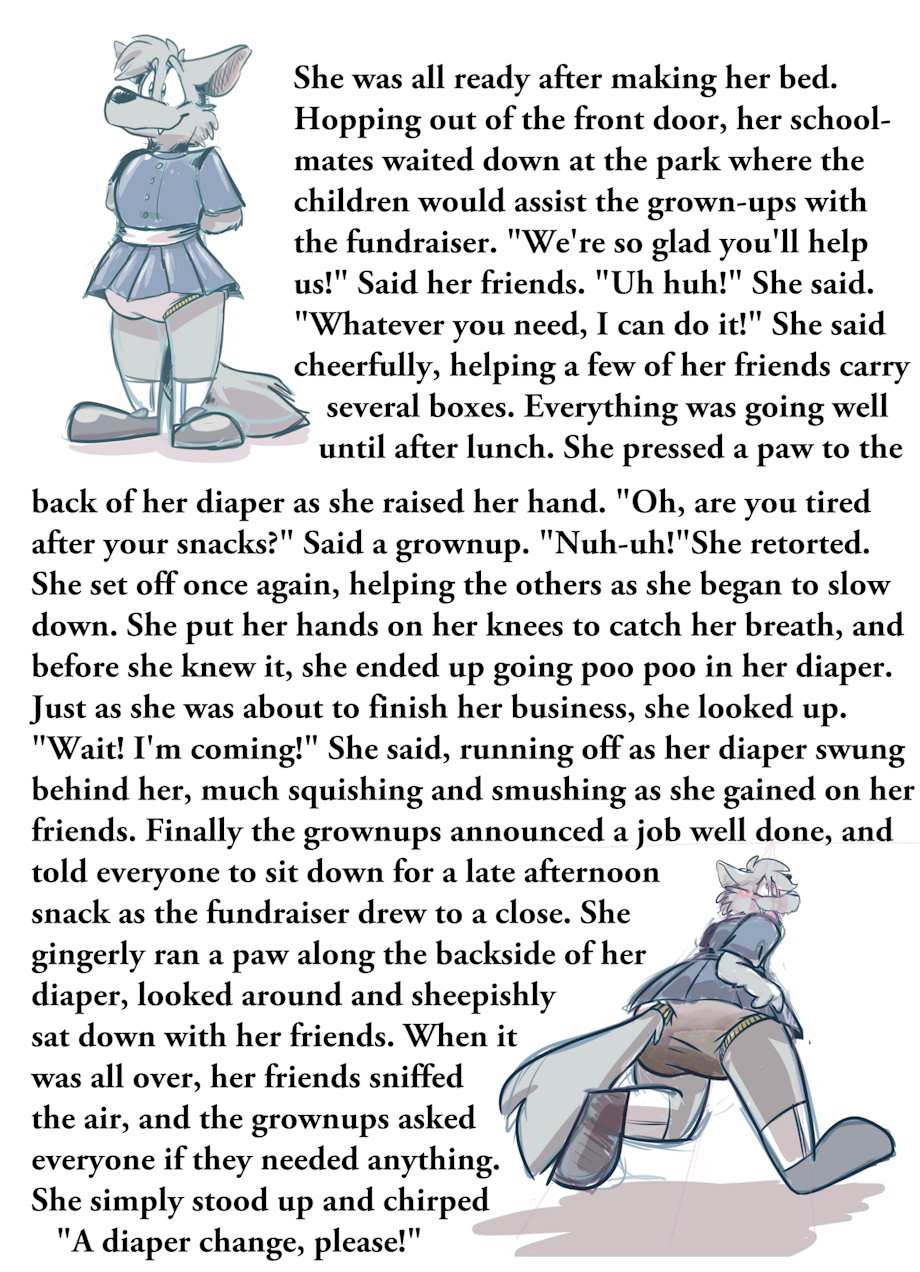 A single page of a little story that came from two sketches of this little wolf girl.