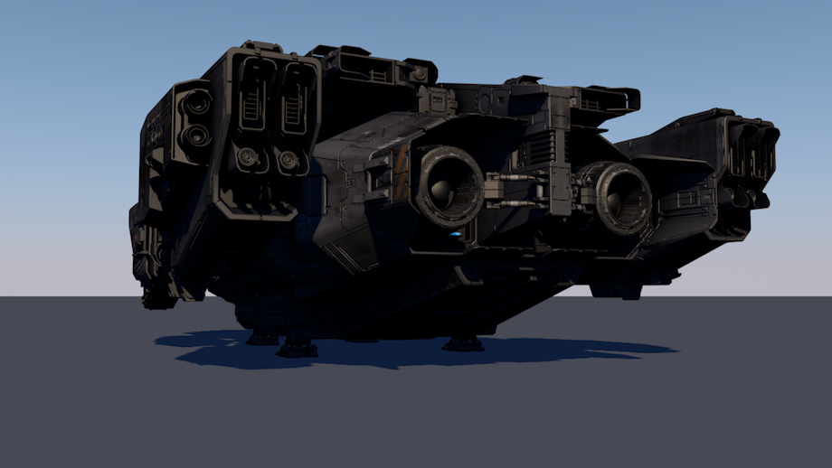 So this vessel was designed for me from the ground out while keeping in mind what I wanted, and I love it! She even included a brief animation of the ship's take off sequence. I'll likely think up of a nice pain scheme later. The only problem now is I need a suitable name to give to the vessel.