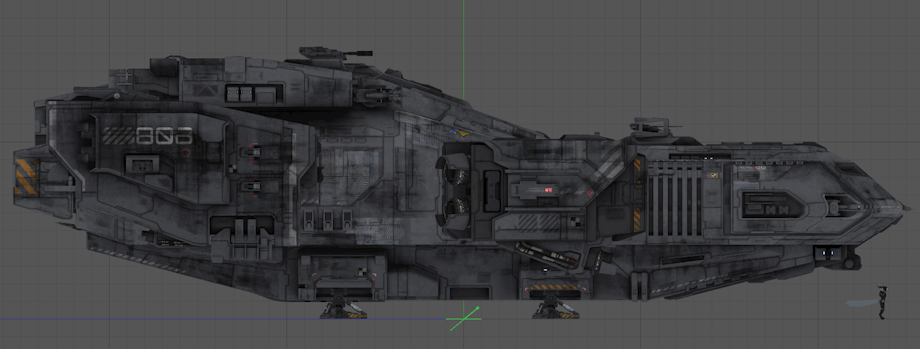 So this vessel was designed for me from the ground out while keeping in mind what I wanted, and I love it! She even included a brief animation of the ship's take off sequence. I'll likely think up of a nice pain scheme later. The only problem now is I need a suitable name to give to the vessel.