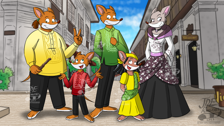 So yeah, I got dared to draw Geronimo Stilton and his family dressed up in traditional Filipino attire. Which means Barong Tagalogs for the guys, and Terno dresses for the girls.