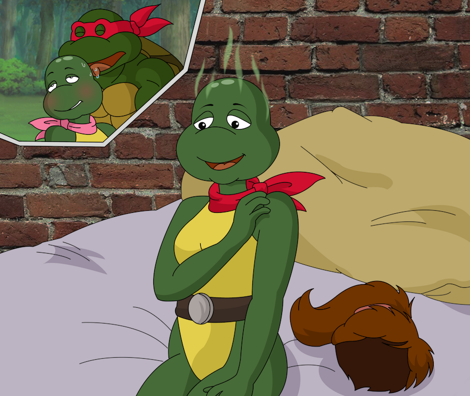 After the events of Raphael Meets His Match. Knowing that she can't go back to the life she had. She accepted her fate as a mutant and went have lived with the turtles.