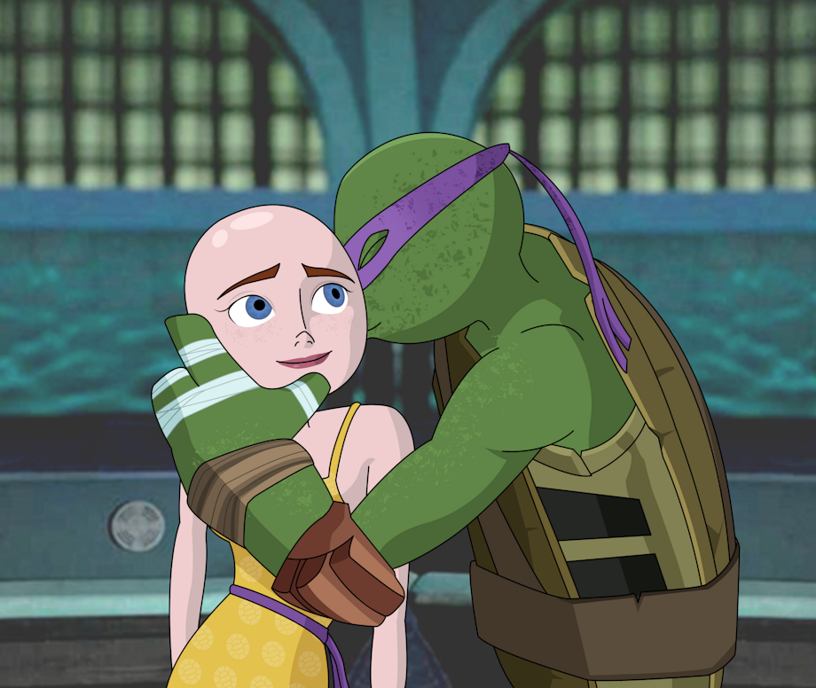 The Birth of her children took hours due to the Labour. She eventuality gave birth to 4 baby turtles that were just like the Turtles where they were babies after being mutated. She was happy to be a Young mother along with Don happy to be a father.