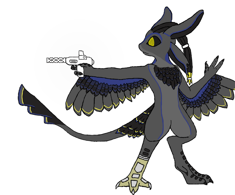 Getting closer to current day. This is my avali character Nezani, as can be seen I didn't color in the pistol, but it was more for a better artist to have a reference on how they looked.