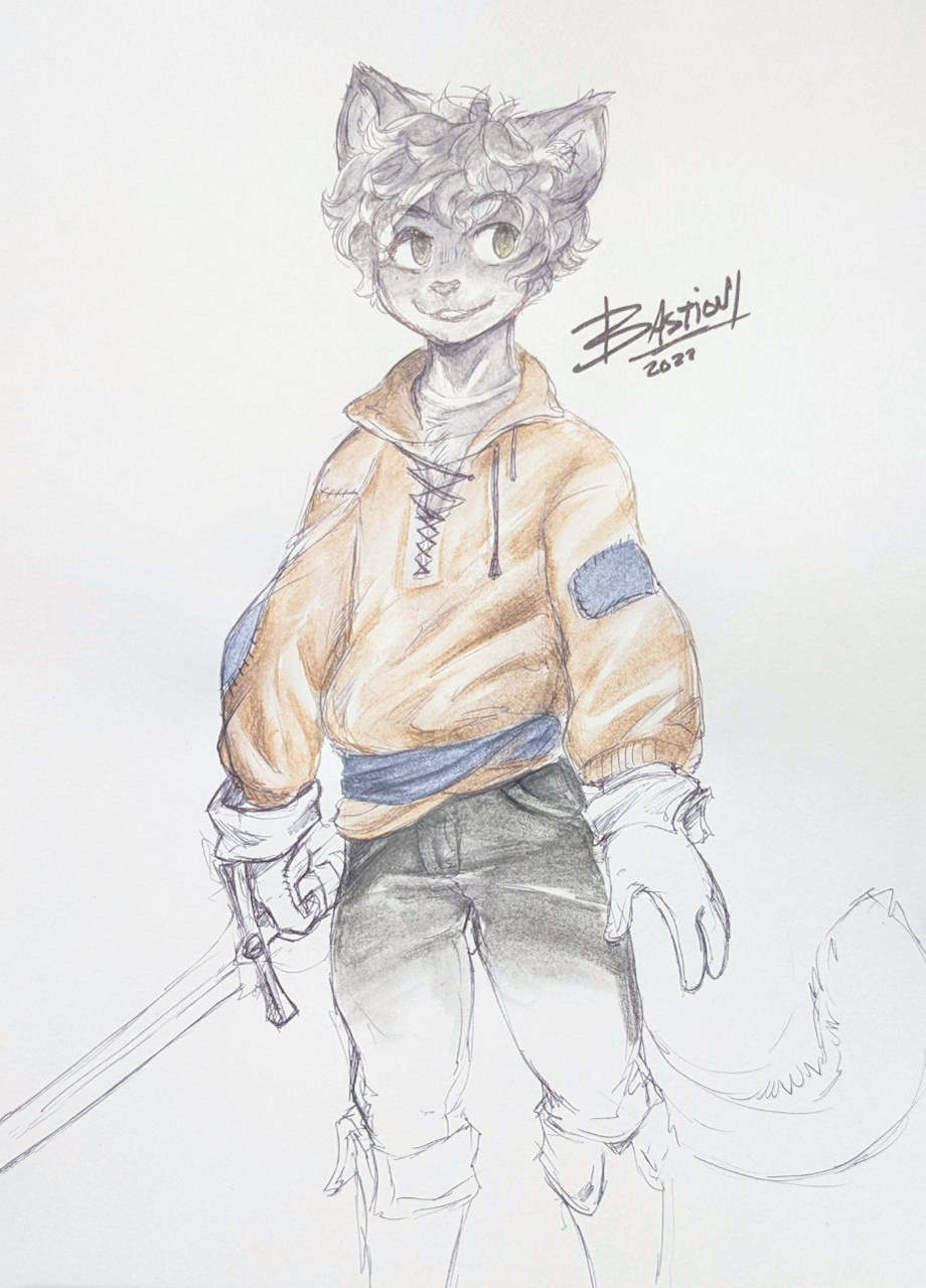 I don't do traditional artwork that often, but it is still good practice! Didn't really have a name for this little guy, so I'll just call him Fencer for now.