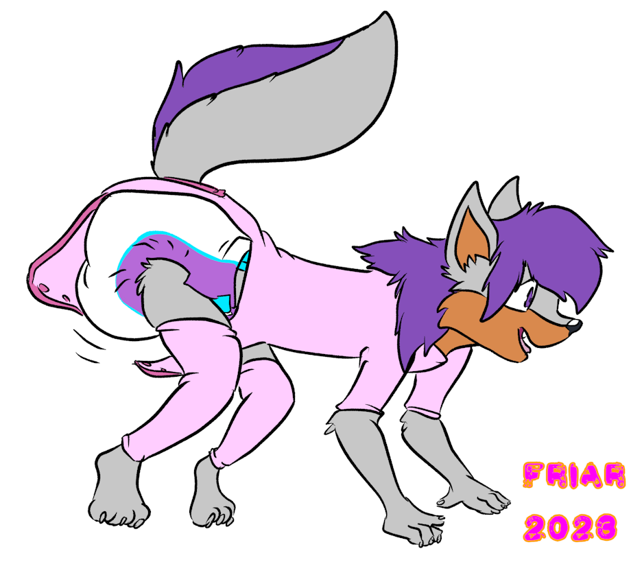 Illustration commission of Bynk on all fours, filling her diaper.
