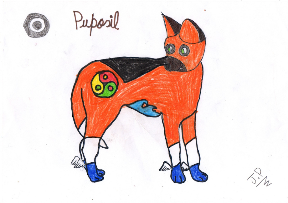 Nombre: Puposil (Pup-osil) Especie: Pokemon cachorro travieso Tipo: Normal Peso: 500 g Altura: 60 cm Habilidad: Impulso Habilidad oculta: Insomnio Estadísticas: HP: 60 Ataque: 65 Defensa: 55 Atk. especial: 60 Def. especial: 60 Velocidad: 65 Movimientos destacados: Arañaso (normal) Azote (normal) Patada giro (lucha) Brillo magico (hada) Descripción de Pokédex: Puposil admira a su evolucion al ser un guardian de la justicia, queriendo un dia evolucionar, de ahi porque entrena mucho. Son algo timidos, pero siempre quieren dar lo mejor de ellos, demostrando su heroismo sin evolucionar, aun asi, no son debiles. Son ideales para un entrenador recien iniciado Origen del pokémon: Su nombre es una combinación del nombre de su evolucion (Criosil) con la palabra pup (cachorro en ingles) (resumen, puppy + crios + silveo) Inspiración: Aunque paresca un zorro, realmente se inspira en el Lobo de crin, conocido en Bolibia como Borochi, especificamente la cria. El vientre con color y forma de olas tiene referencia a lo sucedido con Bolivia tras la Guerra del Pasifico y el simbolo del Yin Yang triple tiene los colores de la bandera de Bolivia. Como tipico compañero de heroe, Puposil lleva puesto unas botitas azules con alas y una capa negra Historia: Puposil aparecio originalmente en la región de Inmari (es mi región pokemon que invente, sin comentarios), pero en su deseo de convertirse en su idolo, Criosil, algunos desidieron nadar por el mar, haciendo que su especie se exparsa por las diferentes regiones, apareciendo comunmente en las orillas del mar o en playas. Uno llego incluso conocer al mismisimo Pancham que se convirtio en heroe en la mini-serie "Poketoons", queriendo ser como el, repitiendo el ciclo de heroismo que hubo entre Pancham y Arcanine, pero ahora con el pequeño Puposil y Pancham, que en ese entonces es un Pangoro Evolución: evoluciona a Criosil al llegar al nivel 30 o cuando tiene una rancha de 10 victorias consecutivas Pais de inspiración: Bolivia Gracias a Ebaru por impulsarme a hacer a este fakemon y su evolución
