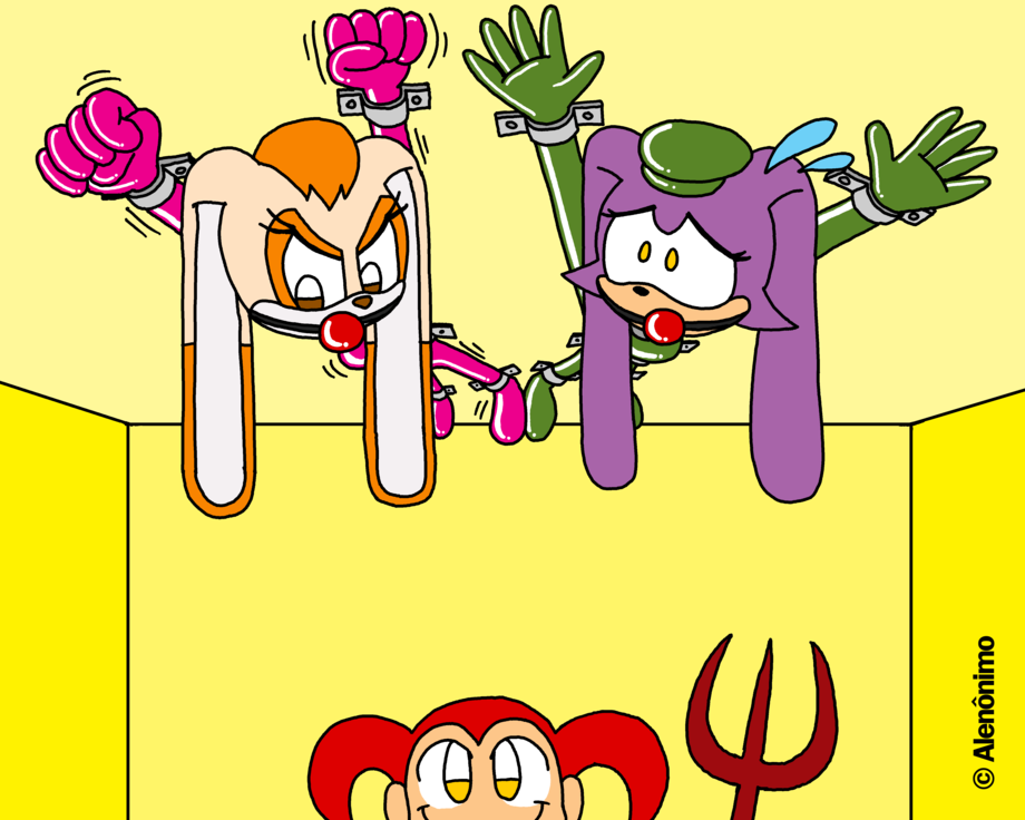 So Laura & Vanilla are in Latex Suits & Got Bolted up to the Ceiling by His Character Lilim. She likes it.X3 The Others don't.XD