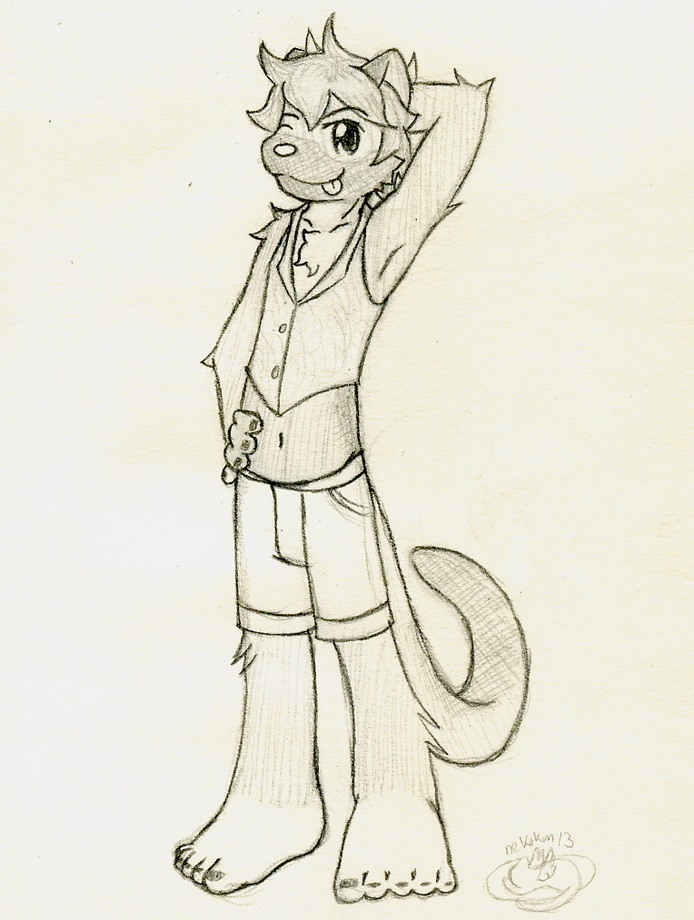 i hope i got the description correctly, as precise as it was i had trouble with it n-nU he's supposed to have a long torso and short legs, but this is as much as i could follow that, i normally have a lot of problems with proportions, so it was hard for me to change those proportions on purpose @-@ also i forgot some details D: