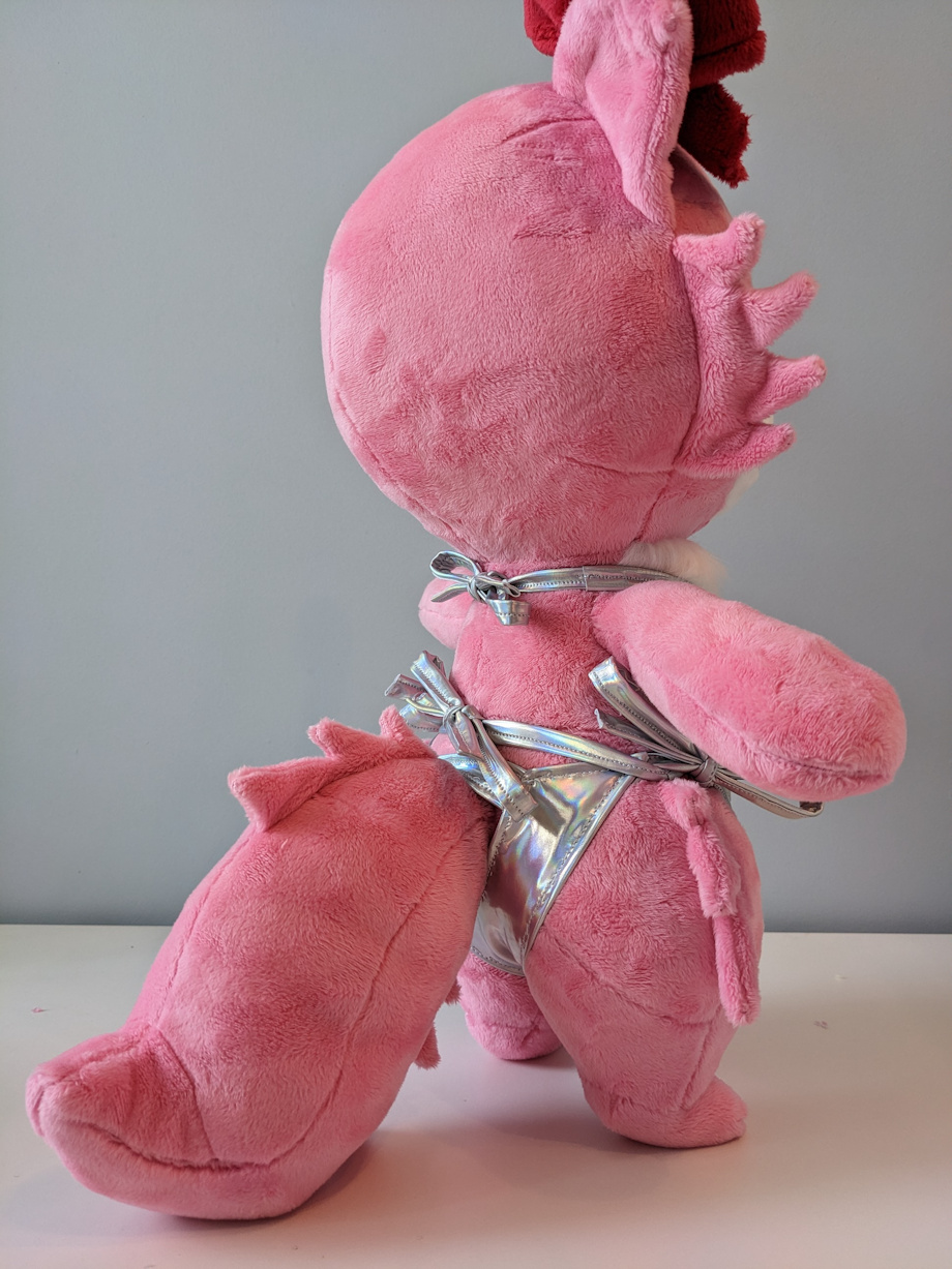 She's got magnets in her hands, under her eyes (I want to try expression things like some fursuits have), and on her ear where her bow is. I also made two outfits so far, based off her main outfit from happiness and her bikini from season 1.