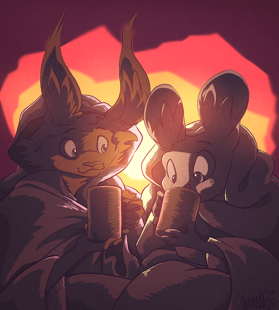 A comfy sit with Jace the squirrel. Jason won Monthly Madness a couple months ago so I drew him some cocoa sips.