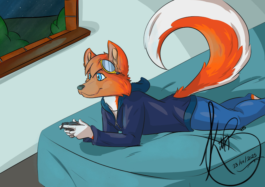 Karlamon enjoying a gaming session, playing one of his favourite games.