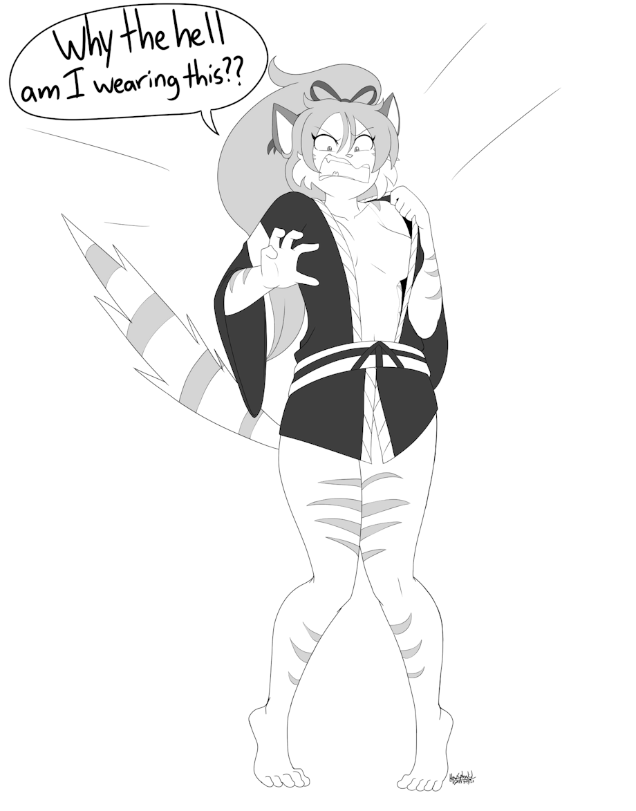 Digital line art commission for Ghis of their character Kidty wearing Caroline's clothes. Been a popular fashion choice it seems :p