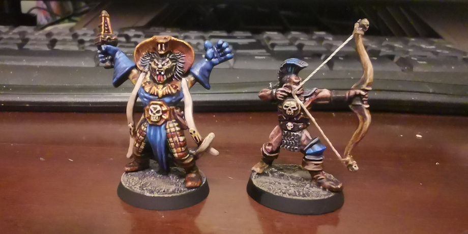 Here another couple of miniatures. Lately I'm a lot more into miniatures than drawings. So I recently got some miniatures from Battle Master and Dark World and painted them up for an "evil barbarians" band for Mordheim. I love the early 80s look. Like they are from he-man.