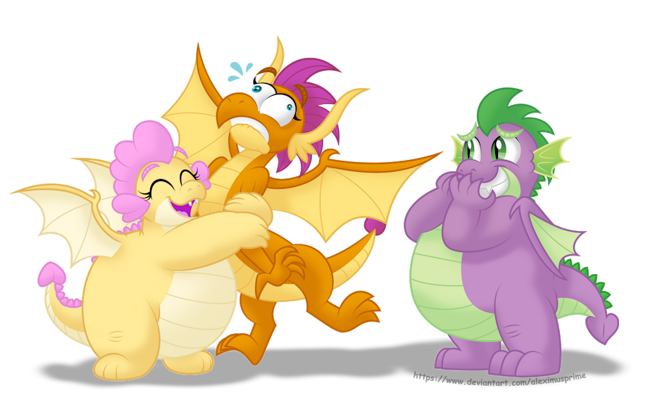 Buttercream giving Smolder a *Yona type* hug, much to her charin & Spike's amusement! XD