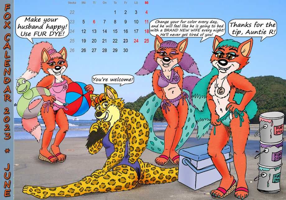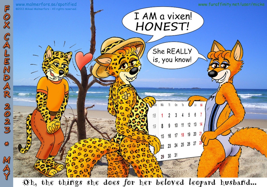It all started when the vixen gave her leopard boyfriend cans with leopard-coloured fur dye as an engagement present, and volunteered to serve as his canvas! You can read all about in in the "Spotified" comic.