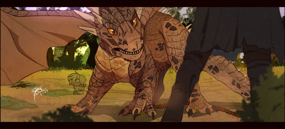I loved working on this despite my hand cramping. I used lots of texture brushes in Clip Studio that were a godsend. I had to redo a bit of the line work since I wasn't really aware of the shape of Draco's belly plates. The reference I used was a bit too dark to tell. 12 hours later though, this is finished. :)