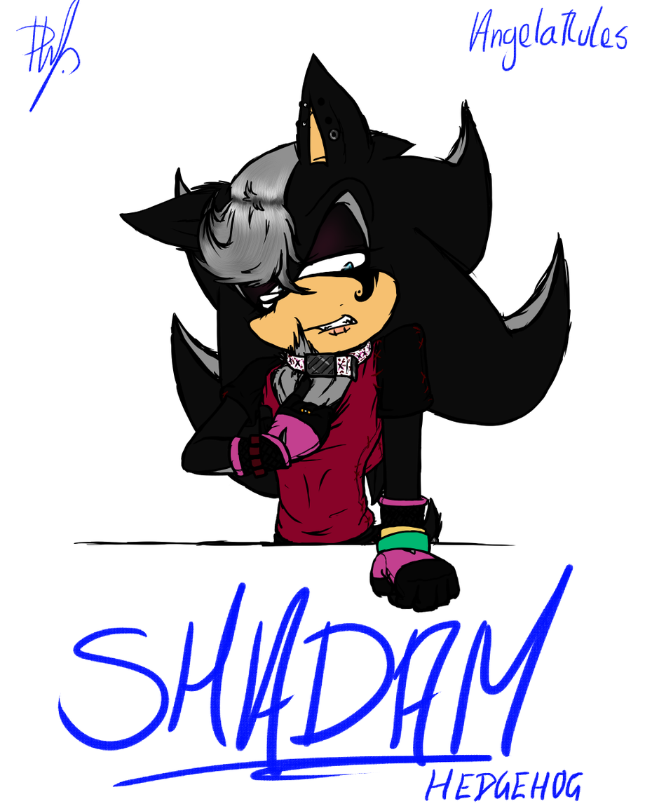 Main body colour White, Black hair, Black eyelids, Black tail, Gold eyes, pale skin that starts below his collar bone and goes down his stomach and splits at his crotch to go half way down the inside of his thighs, pale skin muzzle, pale skin inside ears, Purple tongue (managed to dye his tongue once) and sharp fangs (none Vampire).