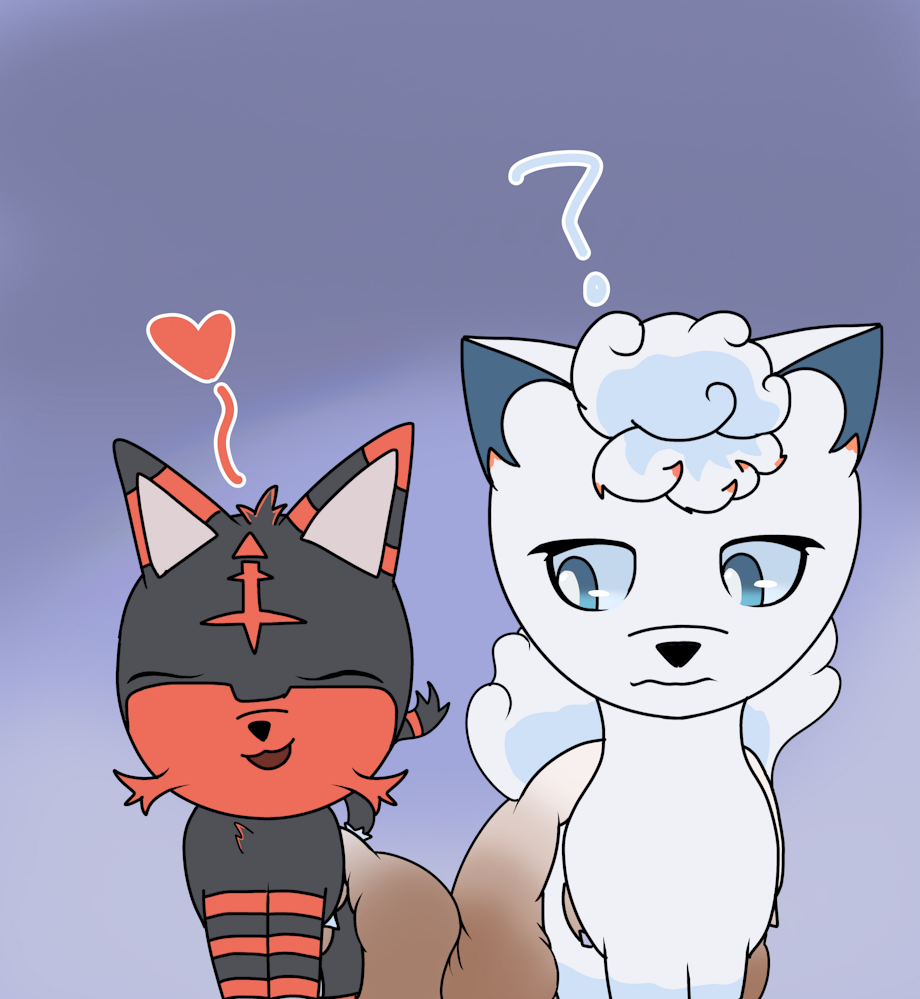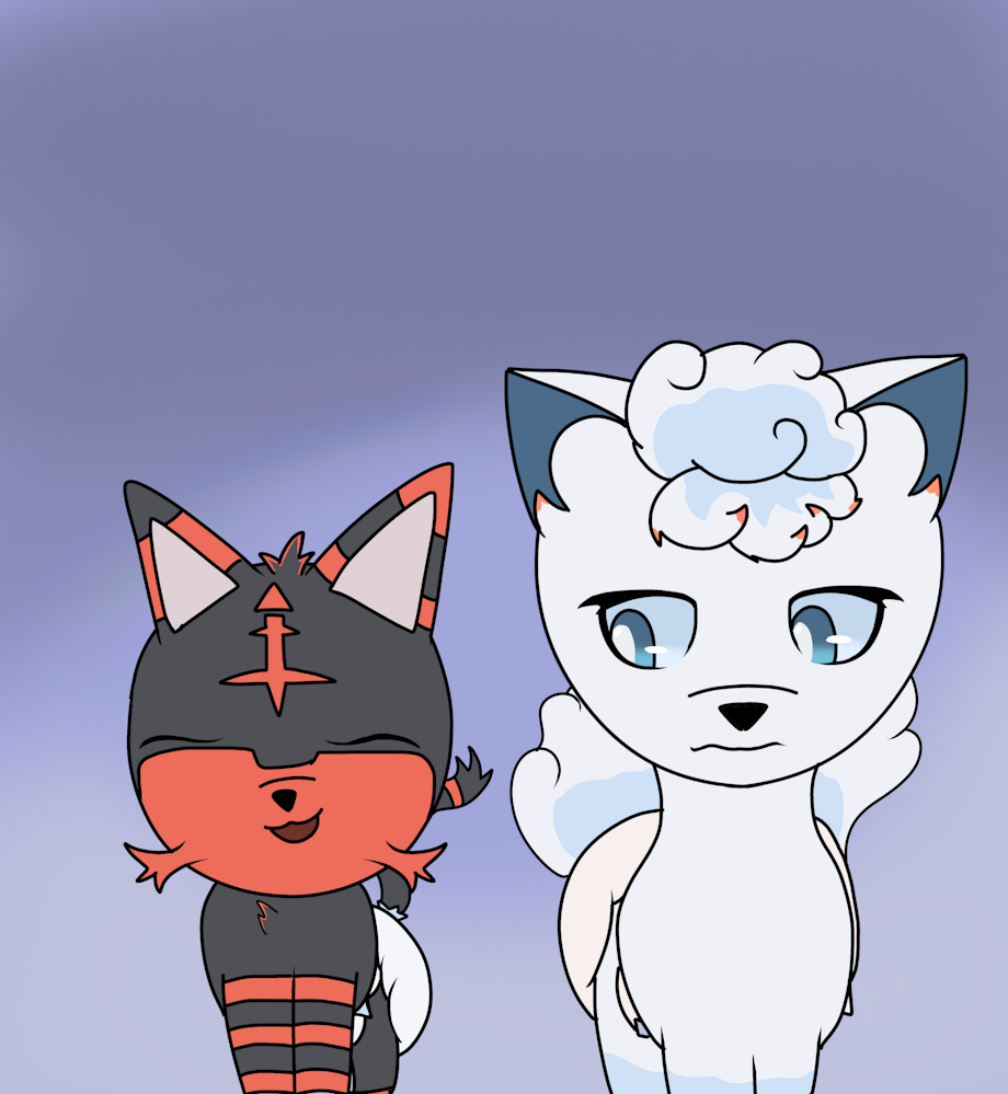 Day 24: Nyatra (Litten) and pensive (alolan vulpix), my poke OCs.