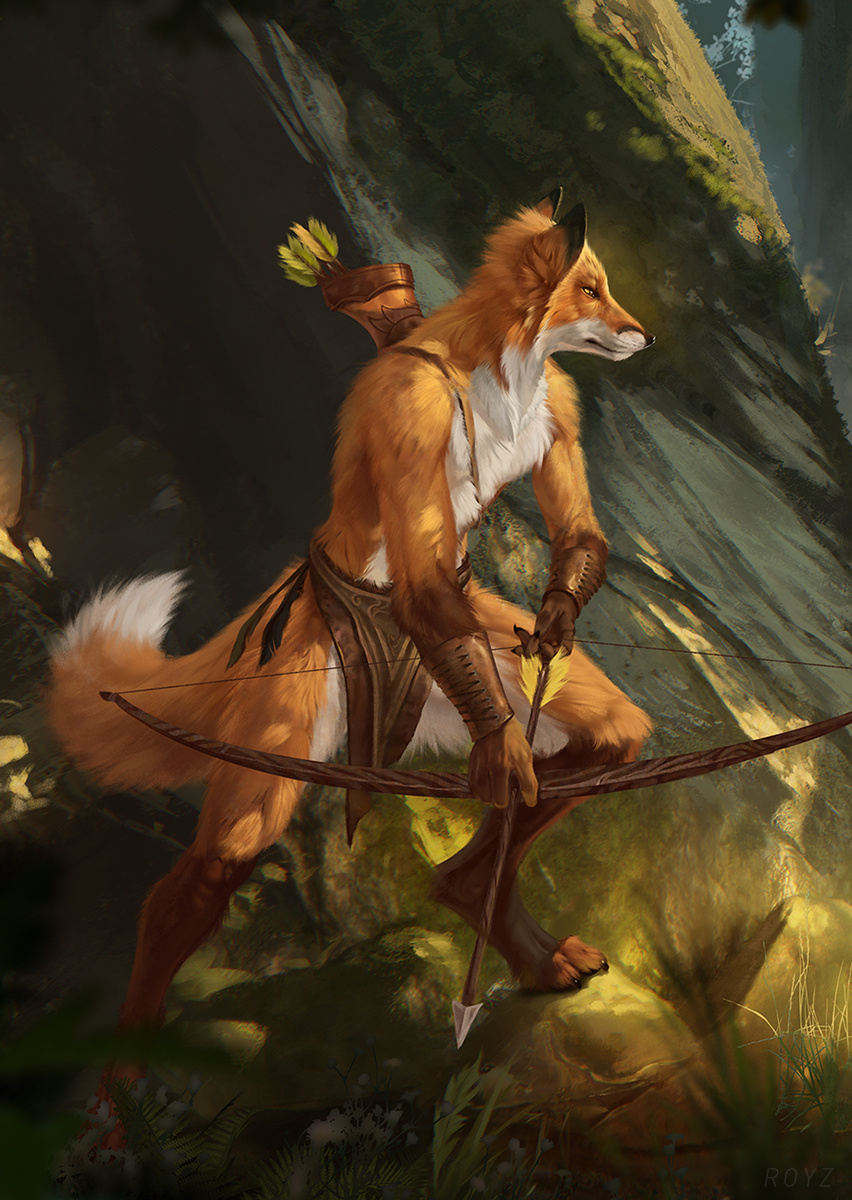 -the background less detailed, by the right amount, than the character. -the tail; IS moving, i see it clearly. -the tension in the expression and in the raised fox fur. lovely details, lovely piece.
