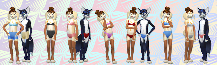 Thongs • Bottom Body (Underwear; Feminine Fashion Choice) version; • Accessory (Tights) version; • 10 Swatches; • Children and Toddlers; • Bulge version for Boys; • Cubs Compatible.
