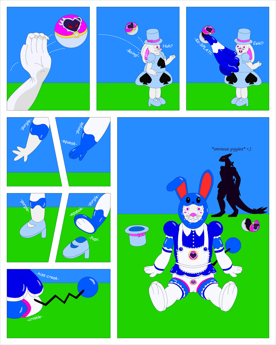 It would seem that Dani was looking to test out one of his Shadow-heart balls... and happened to spot Ephraim's bunny Lily! Looks like she's all suited up in a squeaky Azumarill suit now; ready to join the ranks of Dani's poke-maid-minions!