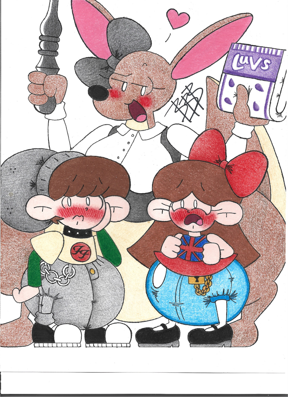 Awww they are just adorable~ And the little lock on the chain is cute. I bet when they get home their Roo Mum has some fun in store for them. I bet they have a room just for her to tease them in.