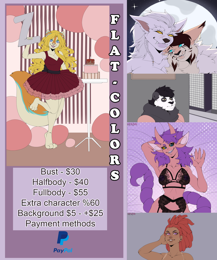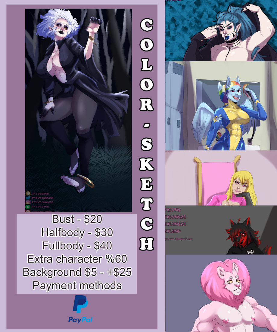 -Estimated waiting time of one to three weeks. you can check trello to see the waiting queue. -If you want to add a background, it would cost an additional $ 5 to $ 65. -Extra character% 60 of the original price ✅️ If i can draw ✅️ -Reference Sheet $70 - $150+ -Humans -Robot -Furry -Fan art -ocxCanon -CandyGore -Gore -Nsfw -Pets -sfw -anthro -futa/trans/herm -kemonomimi/elves/hybrids -scenery -original designs -Armor -Fetish, vore, masochism, inflammation (Ask in private since I have a certain limit) -I also do small gif Nsfw and Sfw, prices range from $30 to $100+ depending on the action. ✨️Comic page ✨️ $40 per frame -Color sketch $55 per frame -Flat color $10- $50 background Extra character %60 🚫I don't draw🚫 -Nsfw with children -Diapers -Screment The estimated delivery time may vary from one to two weeks, or a little more depending on the queue, I will let you know once you schedule your commission You can send me a message or comment with pleasure, I will contact you