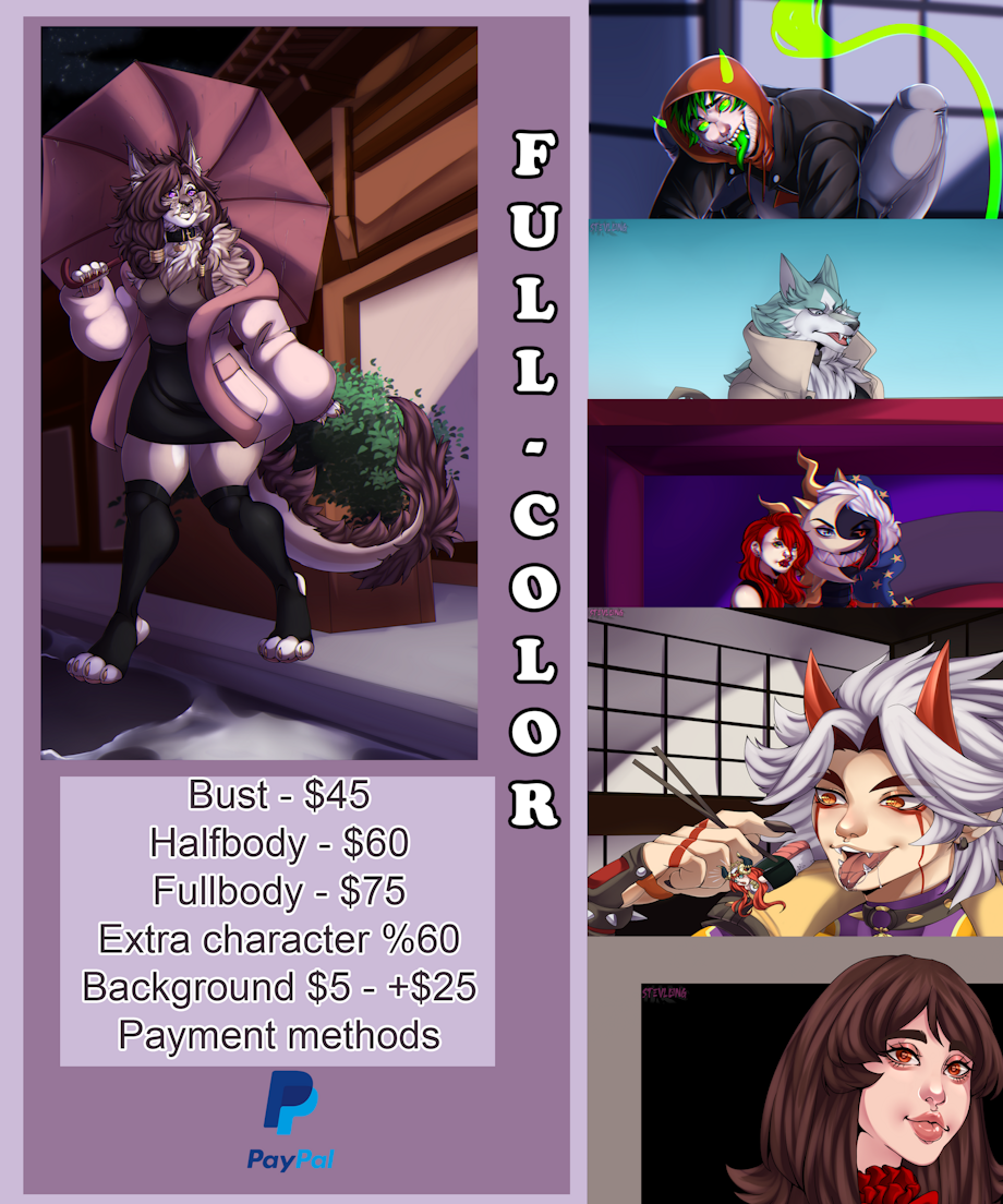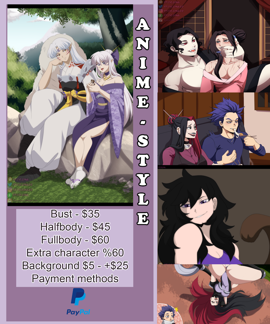 -Estimated waiting time of one to three weeks. you can check trello to see the waiting queue. -If you want to add a background, it would cost an additional $ 5 to $ 65. -Extra character% 60 of the original price ✅️ If i can draw ✅️ -Reference Sheet $70 - $150+ -Humans -Robot -Furry -Fan art -ocxCanon -CandyGore -Gore -Nsfw -Pets -sfw -anthro -futa/trans/herm -kemonomimi/elves/hybrids -scenery -original designs -Armor -Fetish, vore, masochism, inflammation (Ask in private since I have a certain limit) -I also do small gif Nsfw and Sfw, prices range from $30 to $100+ depending on the action. ✨️Comic page ✨️ $40 per frame -Color sketch $55 per frame -Flat color $10- $50 background Extra character %60 🚫I don't draw🚫 -Nsfw with children -Diapers -Screment The estimated delivery time may vary from one to two weeks, or a little more depending on the queue, I will let you know once you schedule your commission You can send me a message or comment with pleasure, I will contact you
