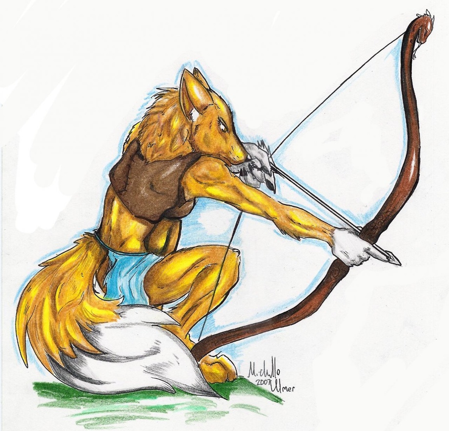 My wolf character Lykopis, who has spotted something and is lining up to take the shot.