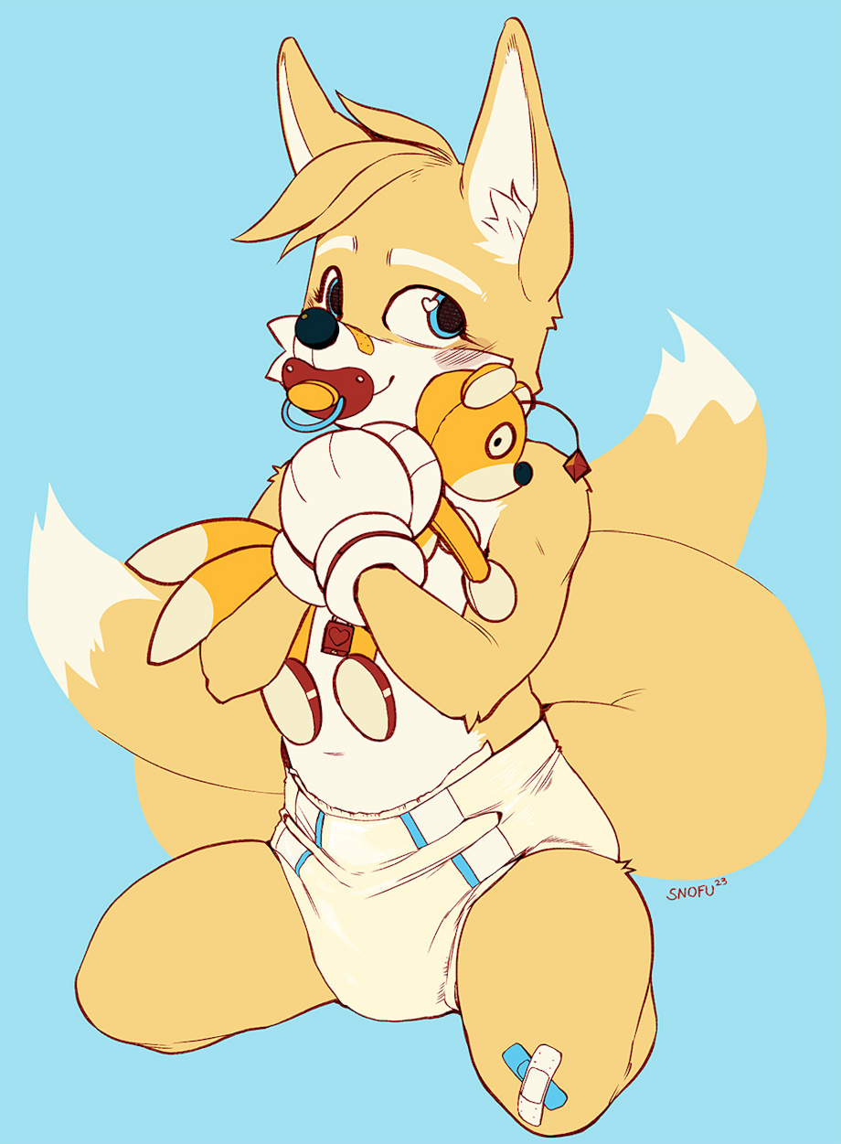 The lovely detail of the heart in the eye is really cute. This is a really adorable image; the bandaids are a great touch and I love the way you didn't line the tails in the background so it actually helps the character stand out more and brings out Tails' profile. it the boiiii