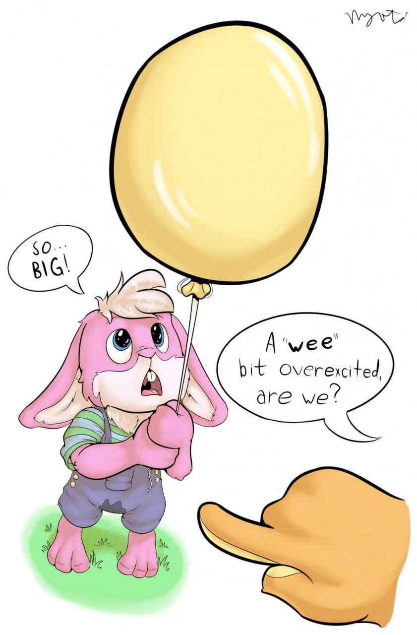 Jimmy got a balloon so big that he piddled himself in excitement.