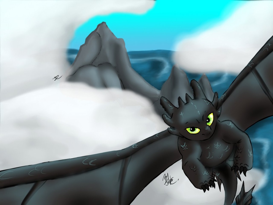 ZOMG HES SOOOO CUTE X3 I just HAD to draw him =) Well I will be drawing more ^^ But this is the image I had after I watched the movie. It's Toothless flying around and in the back is the dragon nest =)