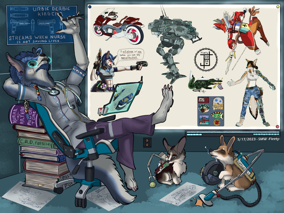 It's taken a while but I finally got a new Offline Screen Image done for my art stream channel. Yeah... its not regular, very random, and rare to stream, but a nurse is busy. All images in the pic are drawn by me in various stages. Was fun to finally finish this piece. If you want to watch a stream some time, come on over.