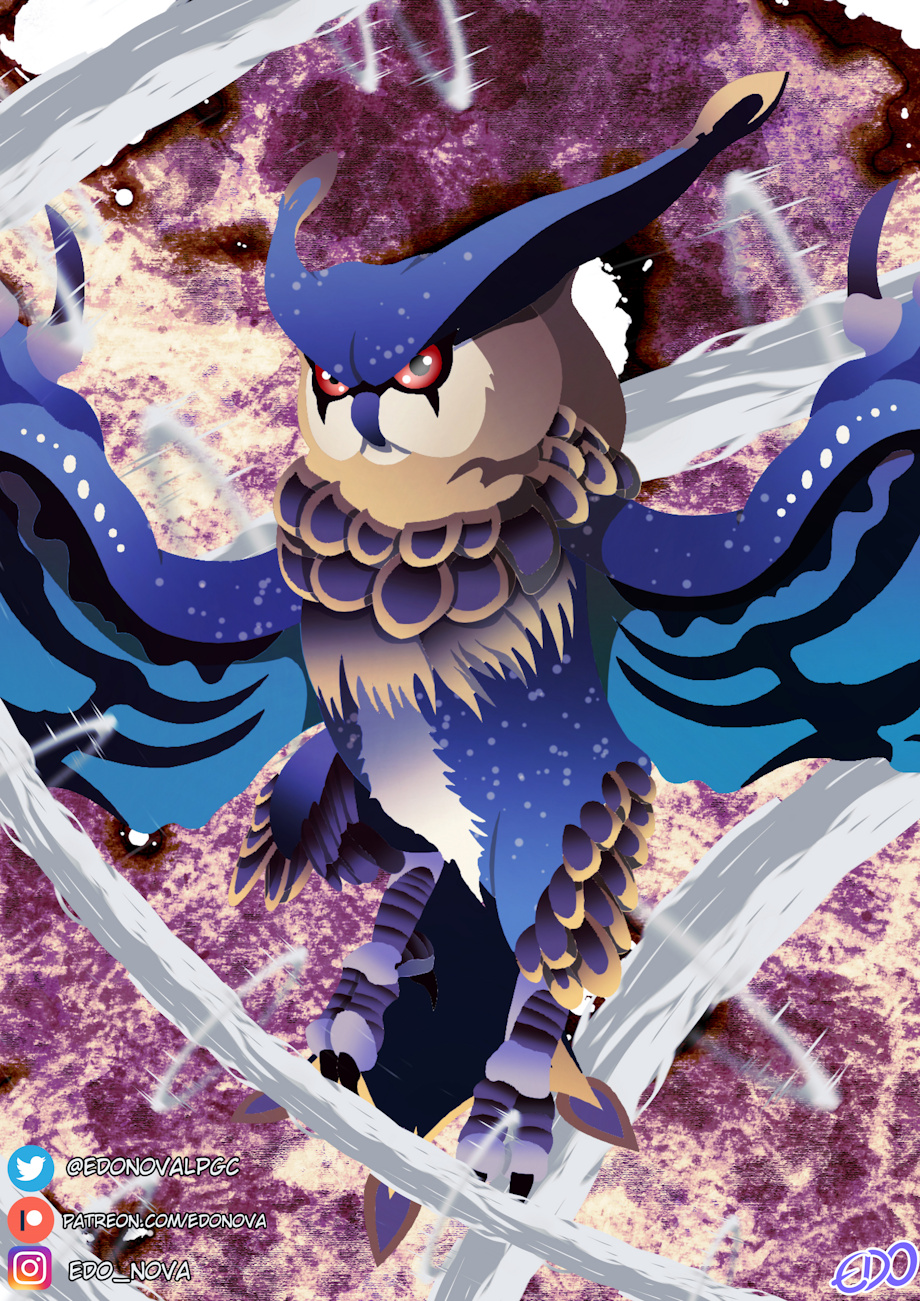 Además, tiene una cantidad de ataques bastante interesantes, atacar a distancia o a corto alcance, por no decir que su plumaje es precioso y que en los escenarios nocturnos… Suerte si lo encuentras