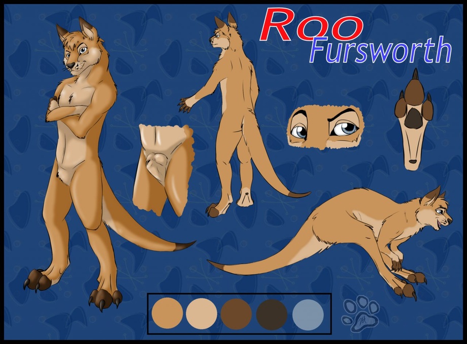 Roo asked me to do a new ref for him, because majority of his art is done by me, and I know his fursona at all angles. He requested I draw the rooballs on it because he keeps getting asked about them, might tag as mature later